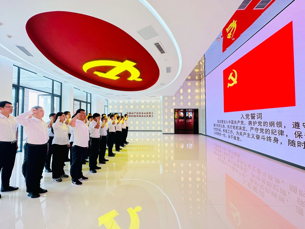 在淮南市黨風(fēng)廉政教育館,大家認(rèn)真觀看了《清風(fēng)廉韻潤澤淮南》專題片,依次參觀了“初心如磐、廉潔始終”“時代使命、廉政清風(fēng)”“警鐘長鳴、廉慎永駐”“千古傳家、廉史鉤沉”等展廳,通過觀看展板、視頻播放、互動查詢等形式,切身體會到中國共產(chǎn)黨對反腐敗工作的堅定決心和有力舉措,現(xiàn)場接受了一次深刻、直觀的黨性教育和靈魂洗禮。隨后,全體黨員重溫了入黨誓詞。