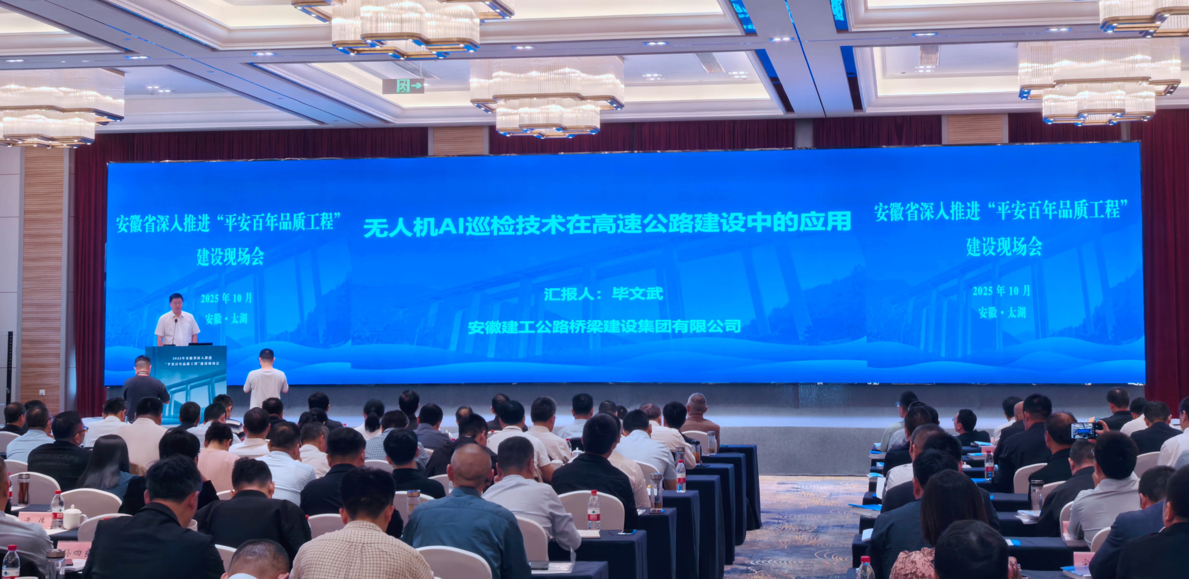 10月16日、17日,安徽省深入推進“平安百年品質(zhì)工程”建設(shè)現(xiàn)場會在太湖勝利召開,公司無人機AI巡檢平臺亮相觀摩現(xiàn)場,并受邀在大會上做技術(shù)交流。安徽省交通運輸廳副廳長孫東根,安慶市人民政府副市長吳志峰,建工控股黨委委員、副總經(jīng)理李有貴等參加會議。