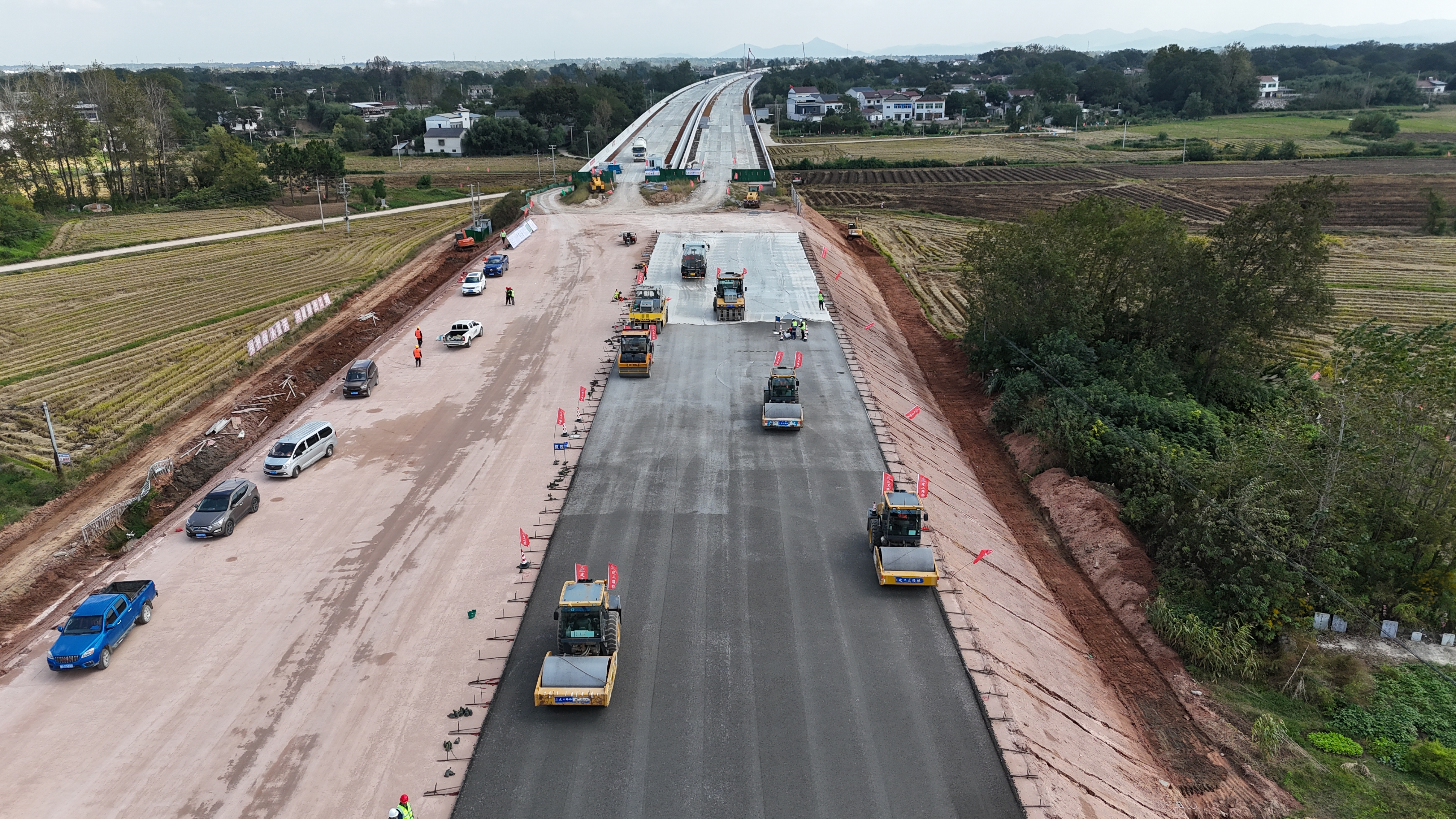 為確保試驗段施工質量與效率,項目部嚴格做好統(tǒng)籌規(guī)劃,合理調度人力物力,現(xiàn)場水穩(wěn)攤鋪平整度、壓實度等關鍵指標一次驗收合格率達100%,為后續(xù)大規(guī)模水穩(wěn)層施工提供了可靠的技術支撐和實操依據(jù)。